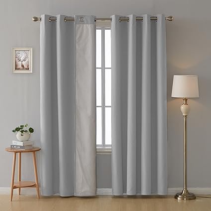 Deconovo Lot De 2 Rideaux Salon Rideaux Occultants Gris Clair Double Face Thermique A Oeillets Isolant Thermique Rideaux Chambre Fille 135x240cm